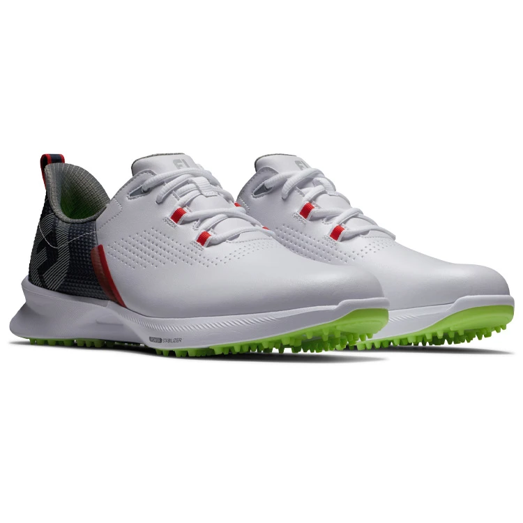 | FootJoy Fuel 55452 Golf Shoes Tour Proven Performance Athletic Versatility Introducing the new Fuel golf shoes from FootJoy. The players spikeless shoe that combines a streamlined waterproof synthetic upper with a mid-foot bevel and exaggerated platform for a modern and athletic silhouette. Below the silhouette, a combination of the sole – inspired by a Pro SL Outsole – patented mid-foot stability bridge, and Stratolite EVA midsole, revolutionises athletic performance with Tour-proven traction and stability through the swing. 100% waterproof, the synthetic upper is easy to clean with 1 year waterproof protection. Experience the ultimate in platform stability and athletic styling from the #1 Shoe In Golf. |