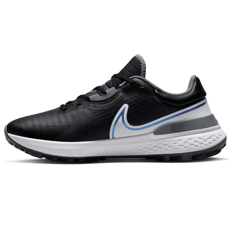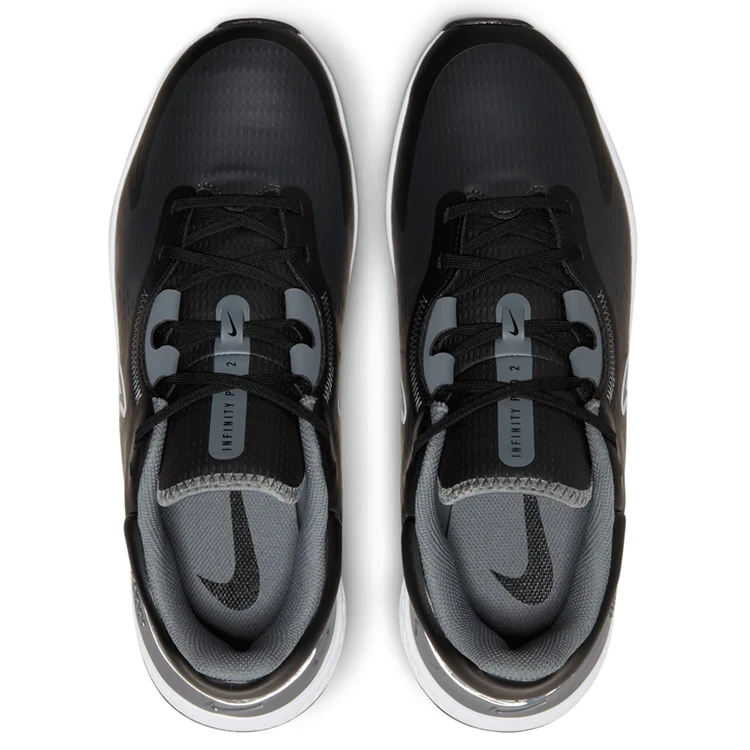 | Nike Infinity Pro 2 Golf Shoes Incredibly Responsive With Cushioned Sole The Nike Infinity Pro 2 shoes not only look like a modern running shoe but perform like one too. They pair the incredible comfort and versatility of integrated traction with a sleek, breathable textile upper. Built with revolutionary cushioning and innovative traction, the Nike React gives you the support, comfort and grip you need to play at your best. A breathable textile is paired with thin, flexible NIKESKIN technology to help keep out water, and features a haptic print which creates a 3D effect to add durability and texture and make it easier to clean. The plush overstuffed collar hugs and cushions your foot for extra comfort and a supportive feel. Combined with a stretchy midfoot band and an internal heel counter to help stabilise your foot through your swing. For improved comfort, the shoe features Nike React technology that is lightweight, durable foam that delivers a smooth, responsive ride. Coupled with a foam sockliner that adds extra cushioning. The integrated traction pattern is created from flexible rubber which increases comfort while you walk, while still delivering the grip you need on the course |