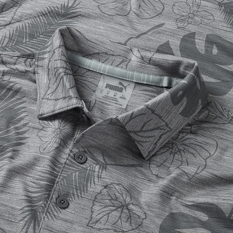 | Puma Cloudspun Leaves ‘n’ Flowers Golf Polo Shirt Ultimate Comfort With CLOUDSPUN Fabric The Puma Cloudspun Leaves ‘n’ Flowers Polo Shirt is a stylish and popular garment that is worn on tour by many players including Rickie Fowler. Made from 94% polyester and 6% elastane, the Cloudspun Leaves ‘n’ Flowers Polo Shirt is designed to offer maximum ventilation and comfort on those warmer days. Constructed from CLOUDSPUN, the fabric is soft, lightweight and has 4-way stretch for ultimate comfort. With DryCELL technology that provides a moisture wicking finish, this polo is an all-round technical shirt that will keep you dry and smelling fresh. Finished with a self collar, floral print detail and a tonal Puma brand logo on the left sleeve for added style. Puma golf polo shirts offer the perfect combination of garment technology with a modern sporty design. |