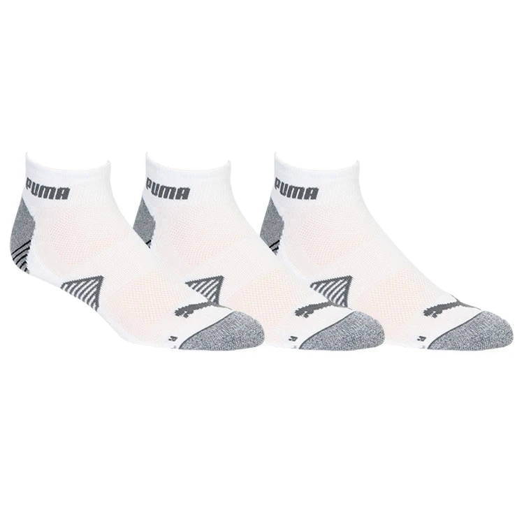 | Puma Essential Quarter Cut Golf Socks (3 Pack) Plush Cushioning With CoolMax Technology Look no further than the Puma Essential 1/4 Cut socks, featuring Cool Max technology, Lycra, and maximum cushioning. You’ll never need another sock to wear to the course. – 3 Pack Socks |